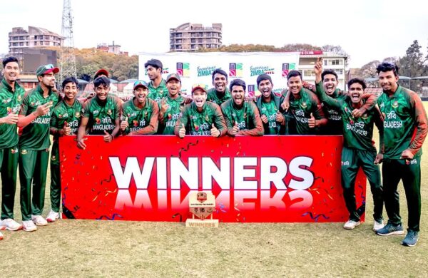 জিম্বাবুয়েতে ত্রিদেশীয় সিরিজের ফাইনালে দক্ষিণ আফ্রিকার বিপক্ষে ৩৩ রানে জয়ে ট্রফি নিজেদের করে নিয়েছে বাংলাদেশ অনুর্ধ্ব ১৯ দল। ব্যাট-বলে দারুণ