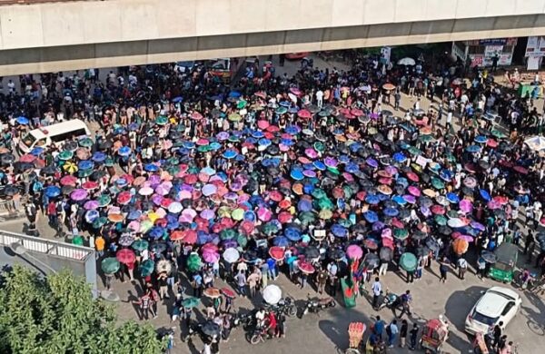 পূর্বঘোষিত ‘লং মার্চ টু ঢাকা’ কর্মসূচির অংশ হিসেবে তিন দফা দাবি আদায়ে রাজধানীর শাহবাগ মোড়ে অবস্থান নেওয়া প্রকৌশল বিশ্ববিদ্যালয়ের শিক্ষার্থীরা