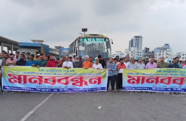 গাজীপুরের টঙ্গী ও ঢাকার আব্দুল্লাহপুর সংযোগস্থল তুরাগ নদের ওপর বেইলি ব্রিজ নির্মাণের দাবিতে বিআরটি ফ্লাইওভার অবরোধ করে মানববন্ধন হয়েছে। ঘন্টাব্যাপী