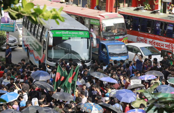 পূর্বঘোষিত ‘লং মার্চ টু ঢাকা’ কর্মসূচির অংশ হিসেবে তিন দফা দাবি আদায়ে রাজধানীর শাহবাগ মোড়ে অবস্থান নেওয়া প্রকৌশল বিশ্ববিদ্যালয়ের শিক্ষার্থীরা
