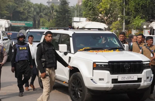 বিএনপি চেয়ারম্যান তারেক রহমানের চলন্ত গাড়িতে টেপ দিয়ে একটি সাদা খাম লাগিয়ে দ্রুত পালিয়ে গেছেন এক মোটরসাইকেলচালক। তখন ওই বুলেটপ্রুফ