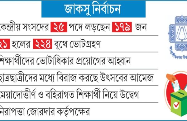 জাহাঙ্গীরনগর বিশ্ববিদ্যালয় কেন্দ্রীয় শিক্ষার্থী সংসদ (জাকসু) নির্বাচন আজ বৃহস্পতিবার অনুষ্ঠিত হচ্ছে। এরই মাধ্যমে অবসান হলো দীর্ঘ ৩৩ বছরের প্রতীক্ষার। সকাল