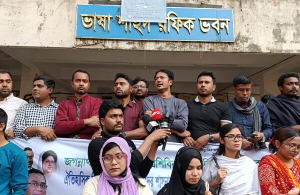 | ফাহিমা আক্তার, জবি প্রতিনিধি জগন্নাথ বিশ্ববিদ্যালয় কেন্দ্রীয় শিক্ষার্থী সংসদ (জকসু) নির্বাচনে ছাত্রশিবির সমর্থিত প্যানেলের ভিপি প্রার্থী রিয়াজুল ইসলামের স্ত্রীকে